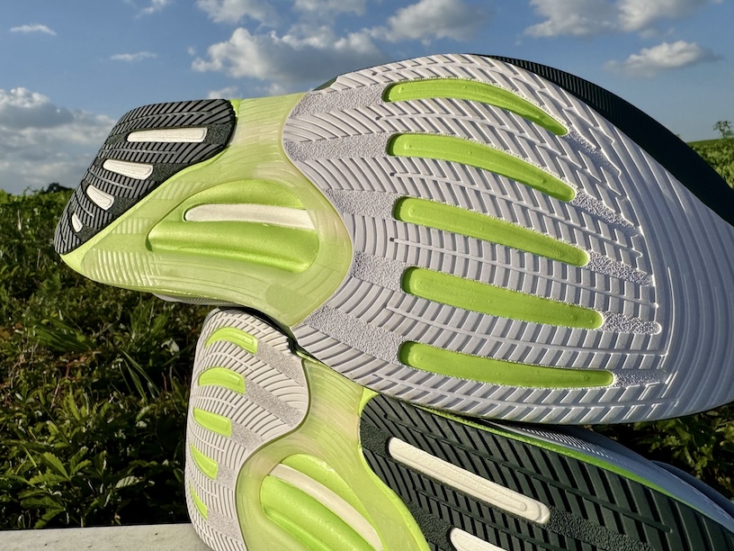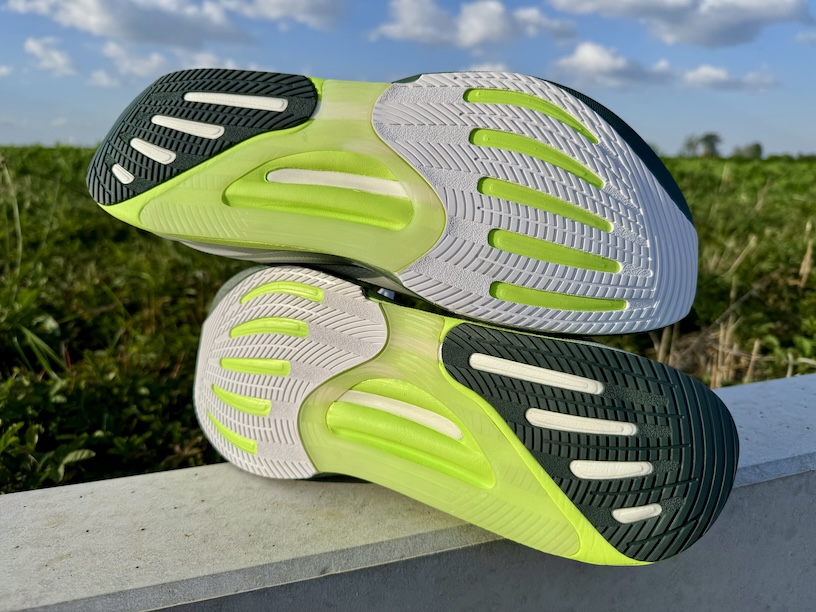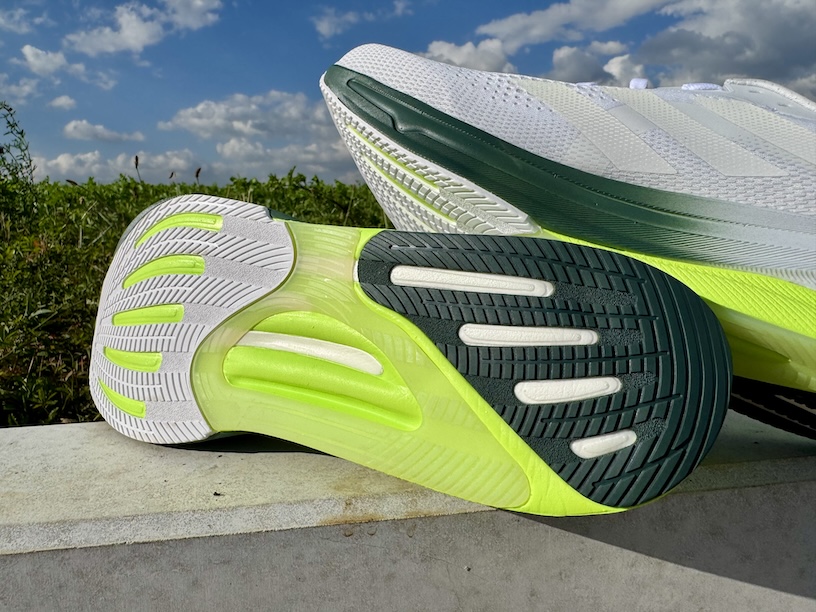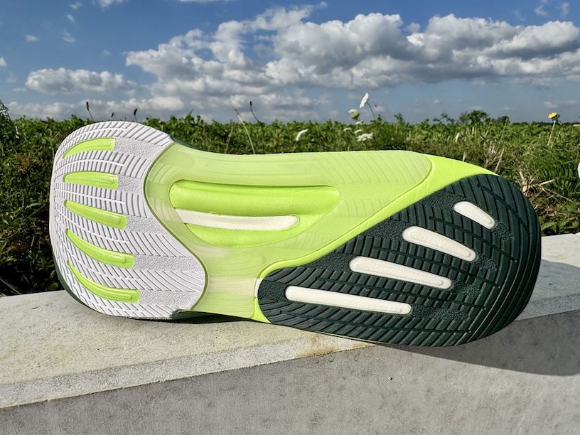 adidas verwendet für die Zwischensohle den Dreamstrike+-Schaumstoff. Der Zwischensohlenschaum wurde aus dem Lightstrike Pro-Schaumstoff inspiriert, der in der Adizero-Reihe verbaut ist. Ein Hauch Profimaterial also in diesem Allround-Laufschuh. Kleiner Unterschied, und ich finde, das markt man sofort, der Dreamstrike+-Schaumstoff ist deutlich fester und sorgt für mehr Dämpfung und Unterstützung. Wie schon geschrieben, der Pushback, den ich noch beim Saucony so genial fand, ist bei diesem Schuh nicht zu finden.