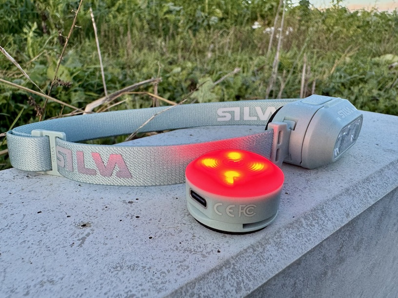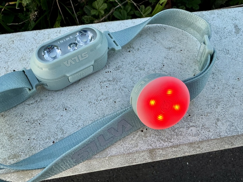 Die Silva Smini ist mit einer LED ausgestattet, die eine maximale Helligkeit von 250 Lumen erreicht. Bei voller Power reicht der Akku hier 1,5 Stunden. Ferner könnt Ihr die Smini auch in zwei weitere schwächere Strahlmodi einstellen. Zum einen 100 Lumen mit einer Akkudauer von rund 2,5 Stunden und 10 Lumen mit einer Akkudauer von 20 Stunden. Damit Ihr Euch die Nachtsichtfähigkeit bewahrt, könnt Ihr alternativ auch Rotlicht einschalten oder aber, für mehr Sicherheit und Wahrnehmbarkeit, den Blinkmodus einstellen, den ich hingegen eher nicht so gut finde, da mich das ständige Blinken kirre machen würde.