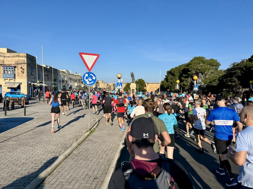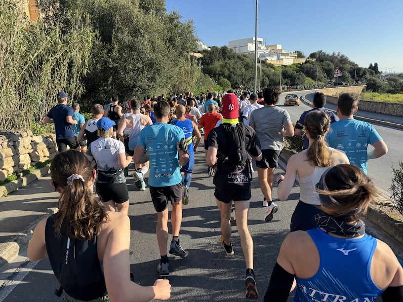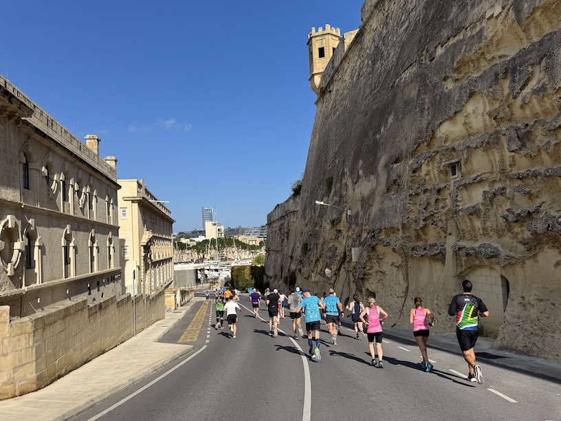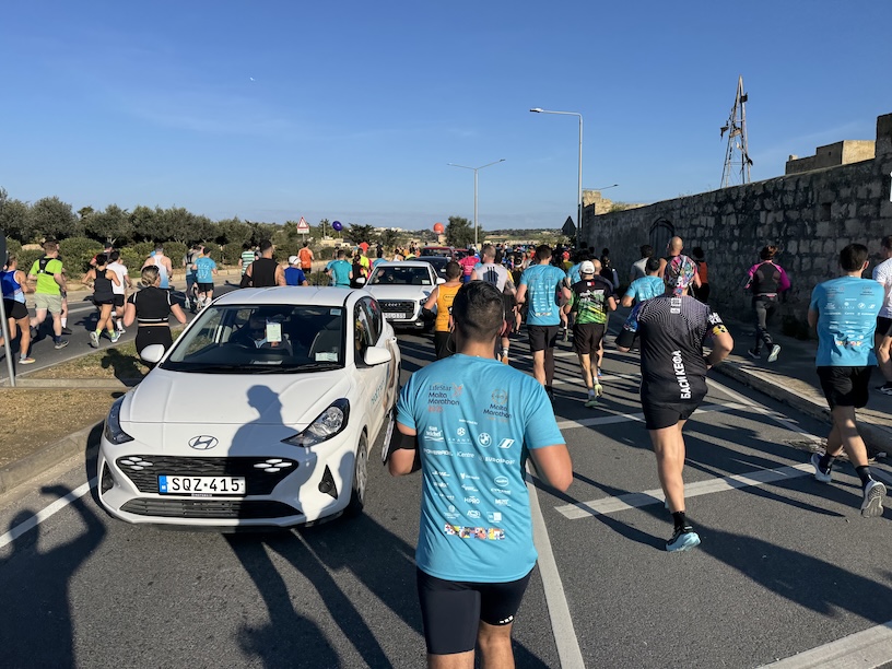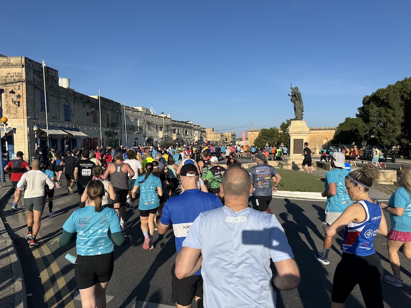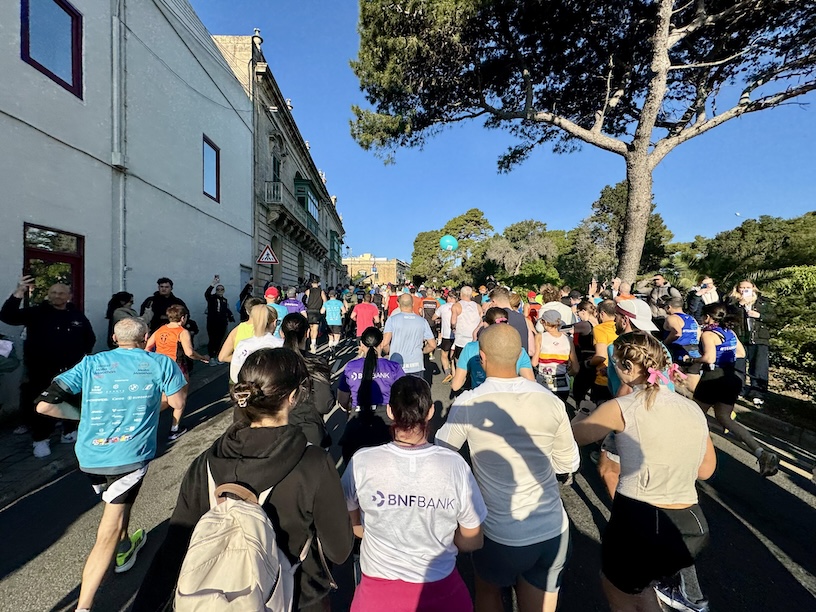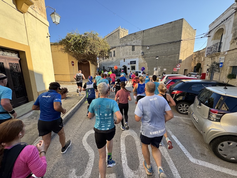 Pünktlich um 8:16 Uhr erfolgte der Startschuss. Ein wenig unkoordiniert nahm nun alles seinen Lauf. Aufgrund der Enge auf dem an sich großen Parkplatz vor den Toren Mdinas gab es keine Startblöcke. So liefen nun auch viele Läuferinnen und Läufer, die merklich langsamer unterwegs waren, im schnelleren Lauffeld. Wer Malta kennt, weiß, die Straßen in den alten Orten sind meist recht schmal. Das Überholen war insofern ein wenig schwierig bis unmöglich. Da ich aber zunächst einmal in Ruhe in den Lauf kommen wollte, ließ ich mich einfach mittreiben.