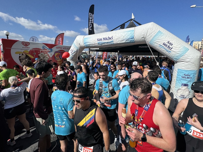 Rechts lag Manoel Island, mit seinem Fort, das aber von uns aus nicht zu sehen war. Entlang des Marsamxett-Harbours folgten nun die letzten Meter zum Ziel. Der Zielbogen war bereits zu sehen. Markanter Punkt für mich war die schöne Jesus of Nazareth-Church, die mit ihrer roten Kuppel aus den üblichen Haus- und Hotelfronten herausstach. Hier, ein kleines Stückchen weiter, befand sich das Ziel, welches ich nach 1:56:11 Stunden erreichte und damit mein enttäuschendes Marrakesch-Ergebnis pulverisieren konnte.