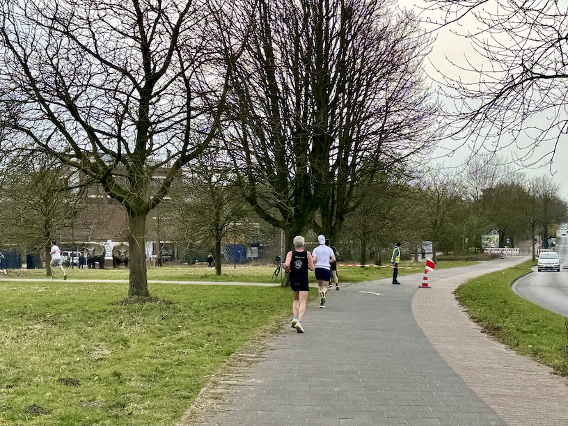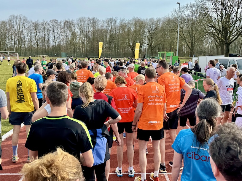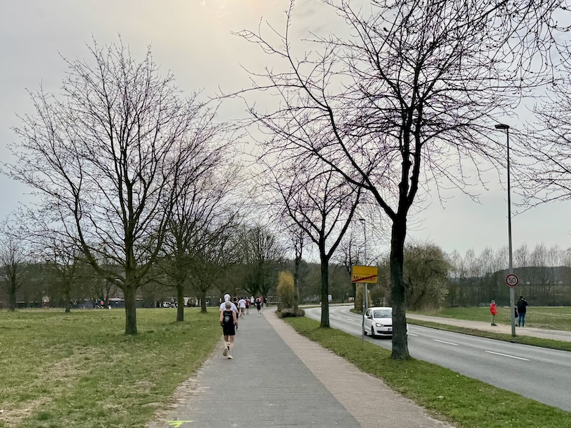 Bei der Anmeldung hatte ich schon festgestellt, dass es eine mittlerweile eine Änderung gegeben hatte. Damals liefen wir noch zwei Runden über 5 Kilometer, nunmehr sollten es 4 Runden zu je 2,5 Kilometern sein. Damals ging die Strecke über die Sentruper Straße, aus Münster hinaus, an Haus Kump vorbei. Dieses Mal ging es lediglich bis kurz vor das Planetarium, bevor es am See zurückging.