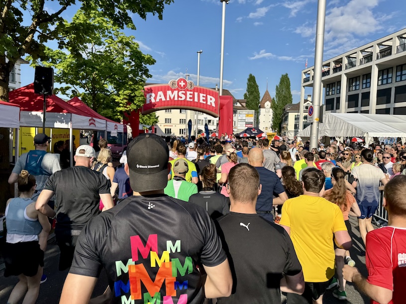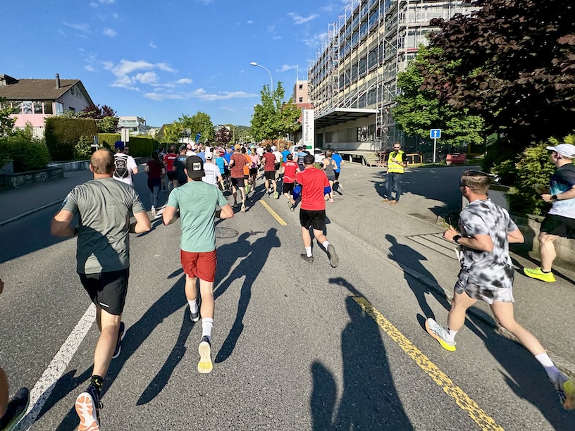 Pünktlich um 18 Uhr stand ich auf dem Martigny-Platz und suchte mir ein schattiges Plätzchen. Dieses fand ich an der Seite einer kleinen Kapelle mit dem für norddeutsche schwer auszusprechenden Namen Chrüzlikapelle. Hier konnte ich noch ein paar Dehnübungen absolvieren und wartete auf den Start, der sich ein wenig verzögerte.