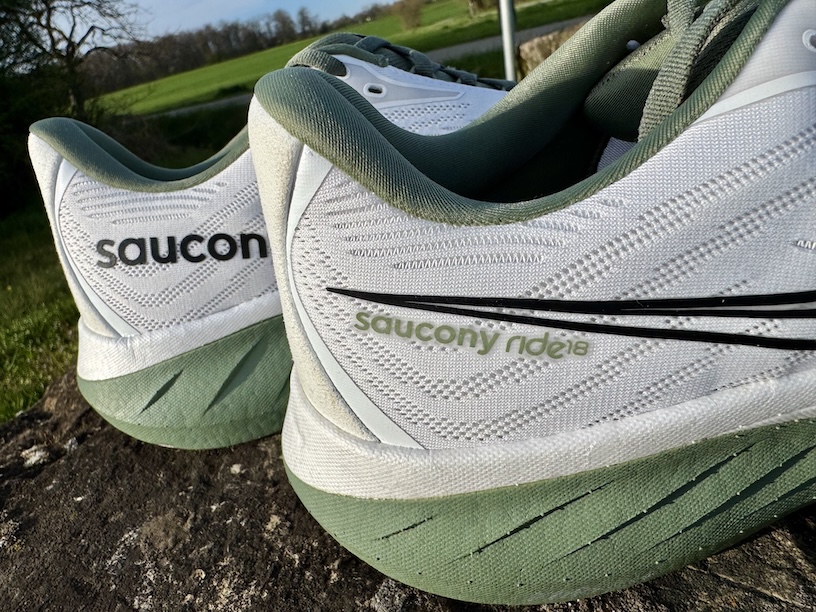 Bei dem Ride 18 hat Saucony das technische Mesh mit FORMFIT verbaut. FORMFIT nutzt speziell geformte Einlagen und Obermaterial‑Strukturen, die den Fuß an mehreren Stellen, nämlich Ferse, Mittelfuß und Vorfuß, umschließen und so eine maßgeschneiderte Passform ermöglichen. Das System verbindet dabei flexibel stabilisierende Elemente im Obermaterial und in der Zwischensohle. Dadurch passt sich der Schuh optimal an die unterschiedlichen Fußformen und -bewegungen an.