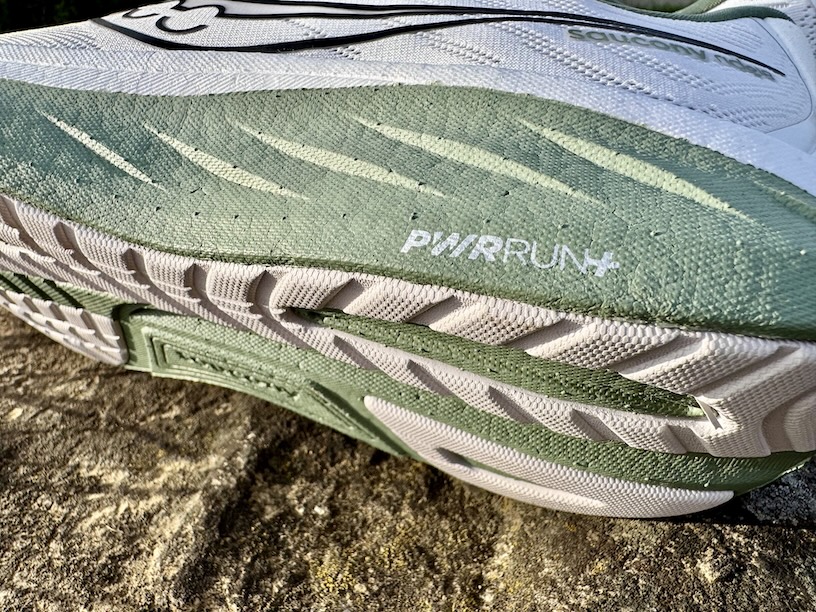 Saucony entwickelte die energieeffiziente PWRRUN-Zwischensohle so, dass diese ein Maximum an Energierückführung gewährleisten soll. Saucony spricht hier von rund 88 % Energierückführung. Durch das spezielle Aufschäumen wird zudem sichergestellt, dass die Dämpfung dennoch leicht, flexibel und je nach Schuhtyp entsprechend ausgestaltet ist.