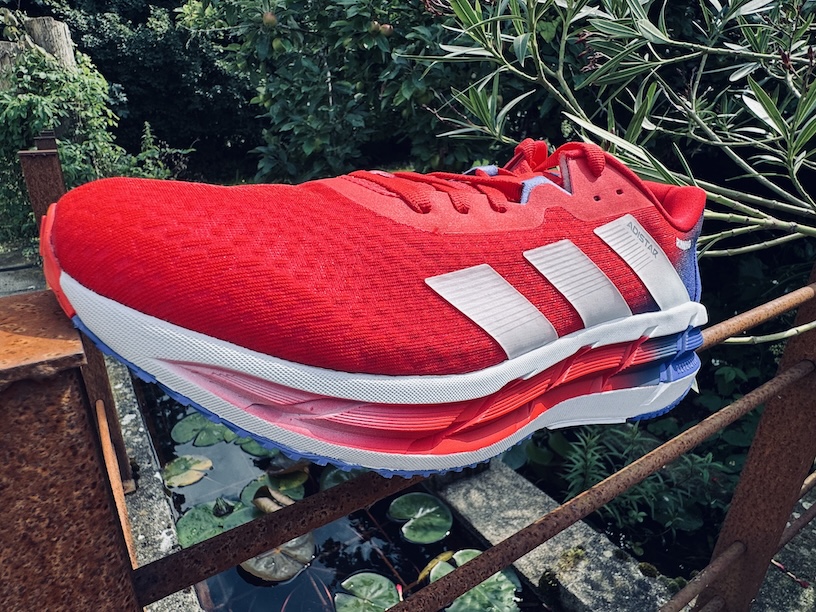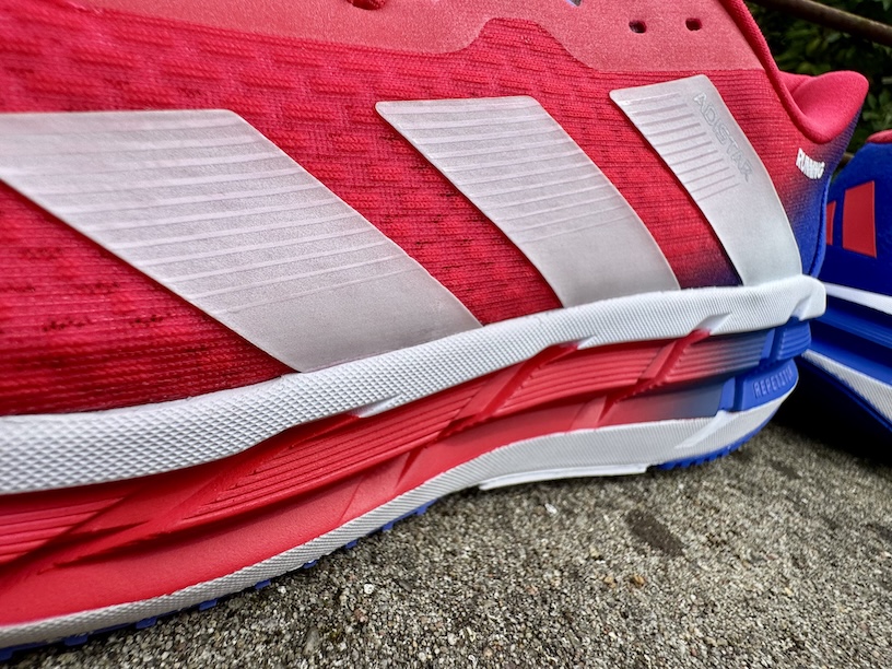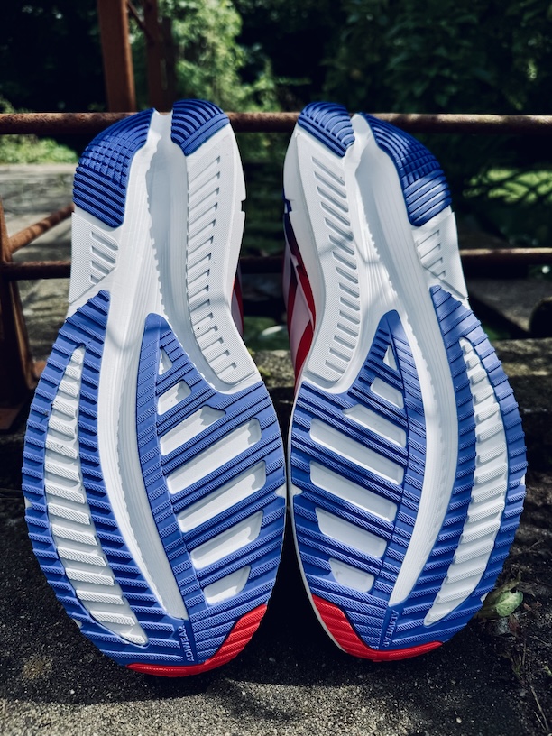 Der Adistar 3 besitzt eine bewusst gestaltete Rocker‑Sohle, die einen sanften Übergang von der Ferse bis zum Vorfuß fördert. Ziel ist es, das Abrollverhalten zu erleichtern und ein besonders komfortables Läufererlebnis zu schaffen. Der Sohlenaufbau ist beim Adistar zwar hoch, dennoch bietet sich kein eventuell auftretender Wippmechanismus aufgrund der gebogenen Form der Sohle. Die durch Repetitor gepolstert, weiche Zwischensohle, kombiniert mit dem Verzicht auf eine Carbonplatte, sorgt eher für eine natürliche Bewegungsführung des Fußes als für ein starkes Schaukeln.