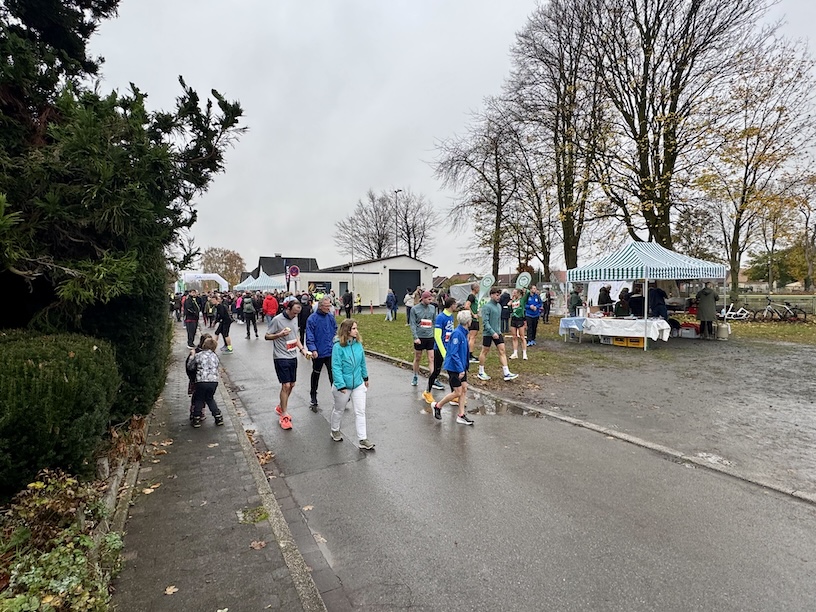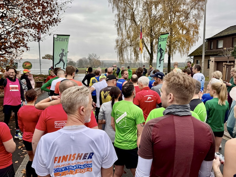 Da ich in Werl noch nie war, war schnell klar – die weitere Entfernung schreckt mich nicht und somit ging es dann eben an einem Samstagmittag nach Werl. Dort angekommen, genauer gesagt im Weiler Sönnern, fand ich ein total familiäres Umfeld vor. Die Kinderläufe waren gerade abgeschlossen, der 5 km-Lauf in vollem Gange, danach sollte der 10er folgen. In der Schule, die direkt am Sportplatz lag, holte ich mir meine Startnummer ab und machte mich in der Umkleidekabine lauffertig.