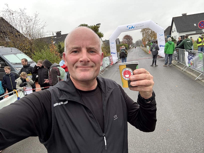 Mit 47:53 Minuten und einer durchschnittlichen Pace von 4:47 min/km reichte es unter den 78 Finishern für einen Gesamtplatz 44, bei den Männern für den 33. Platz (51) und in der Altersklasse für einen 3. Podiumsplatz (4). Im Ziel gab es neben Wasser auch warmen Tee, den ich für mich nutzte.