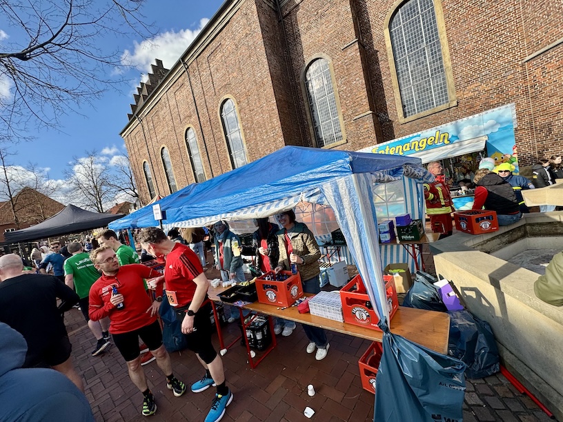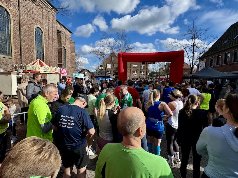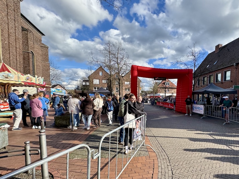 Nachdem ich in Alstätte ankam und einen Parkplatz gefunden hatte, war ich auch schon recht schnell im Zentrum des kleinen Örtchens. Hier war eine Menge los, da die Stadt nicht nur den Lauf veranstaltete, sondern gleichzeitig noch ein Stadtfest abhielt. Im Gesundheitszentrum, direkt gegenüber der Kirche, holte ich mir meine Startnummer, schaute noch ein wenig rum und lief mich ein. Viel Zeit hatte ich nicht mehr, da ich diesmal ein wenig knapper in der Zeit war.